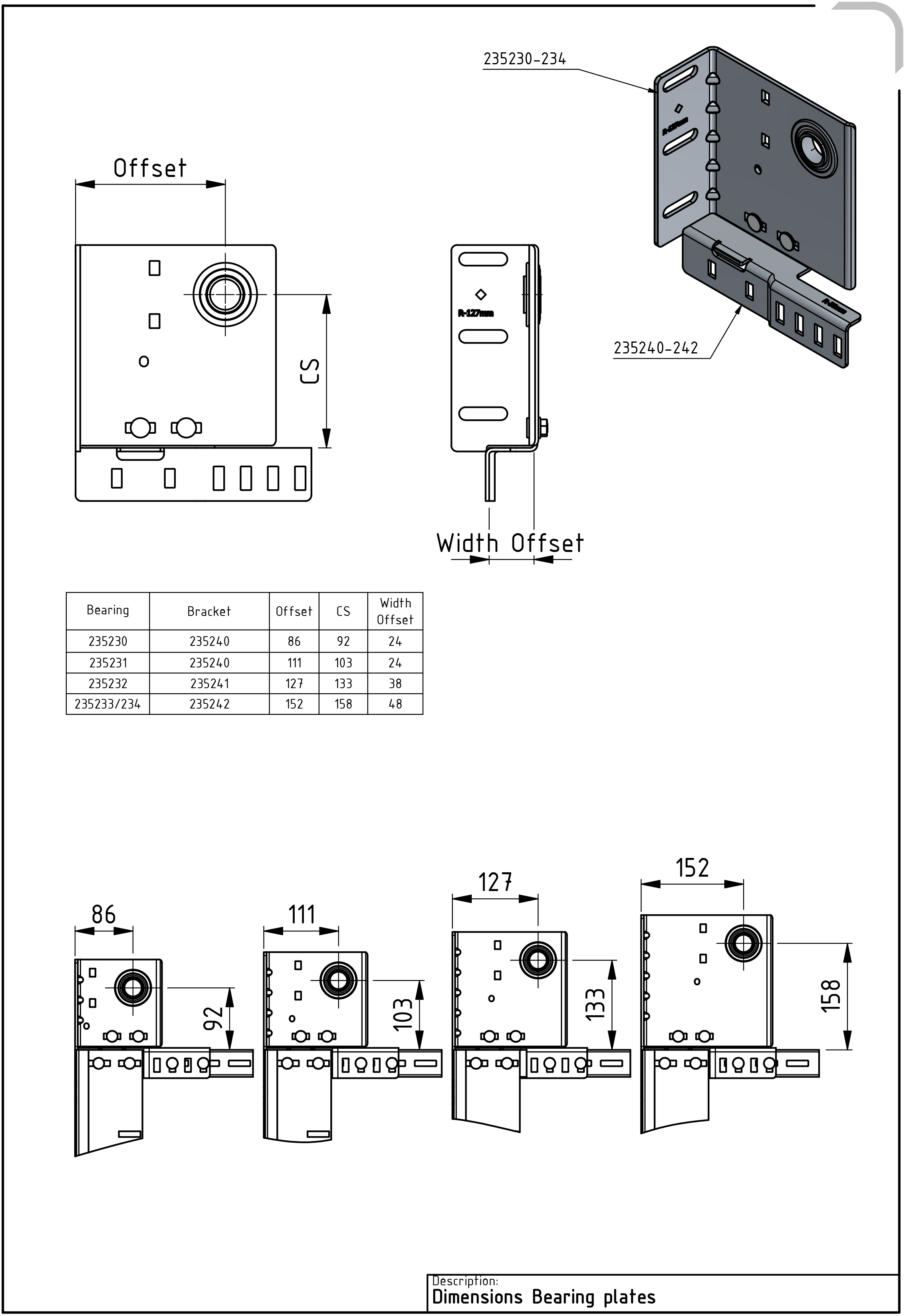 Koncový držák s ložiskem, offset 152x4 mm 1,25”
