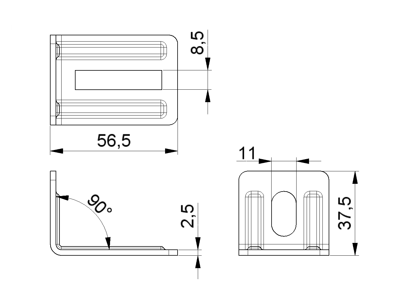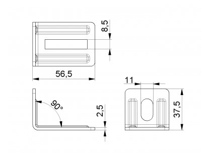 Angle for vertical angle reinforcement (REN70). Also suitable for c-track to trackset connection.