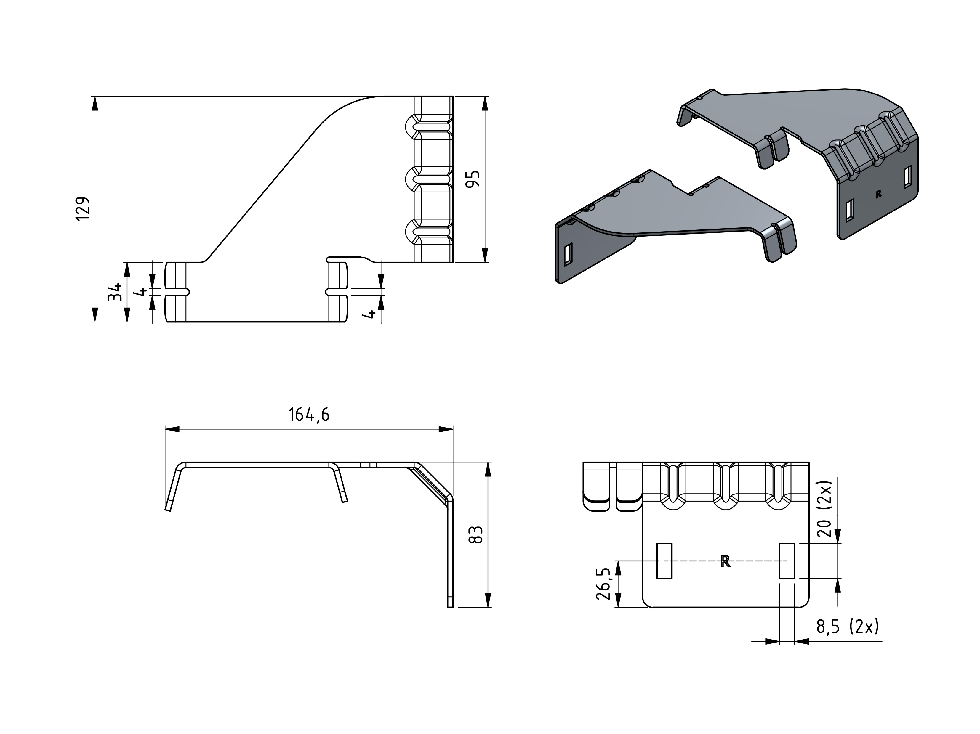 This reinforcement set is designed for the residential spring break devices and prevents deformation, and secures a stronger connection of the complete Power-unit. The reinforcement brackets are mounted on the c-profile and keep the spring break device securely fixed in position.