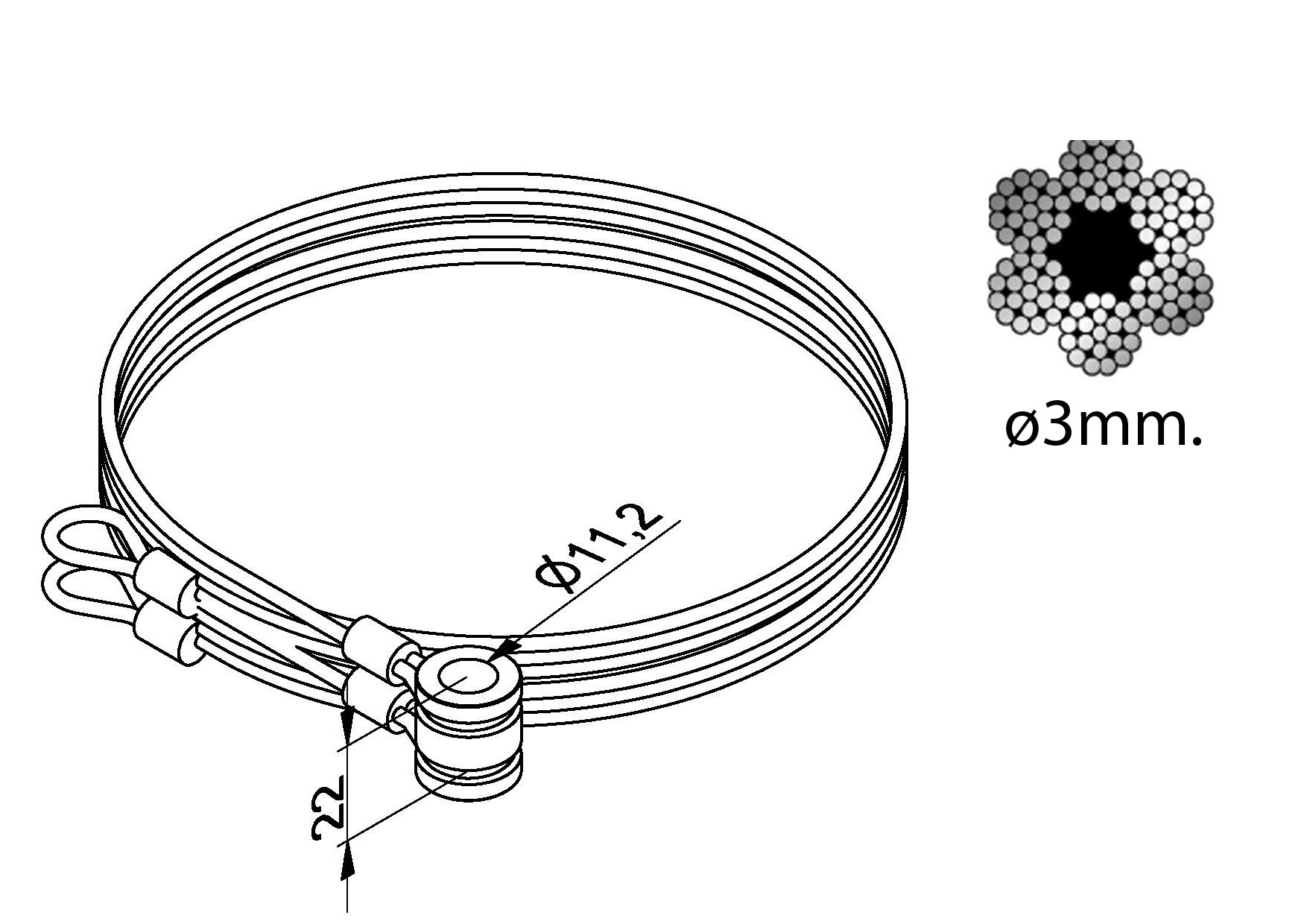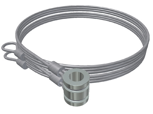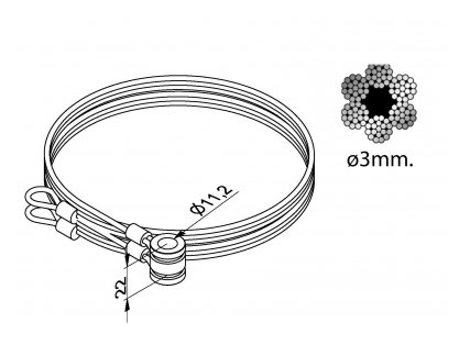 Cable set with double ø3mm cables. One set needed for each door. Including mounting bushing for a roller shaft of ø11. T